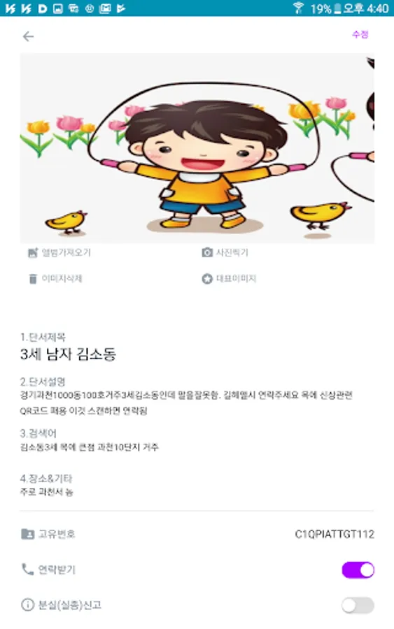 3. The owner registers the corresponding serial number of the product along with the image or attaches the unique QR code of the contact provided by this application, and the learner uses it.