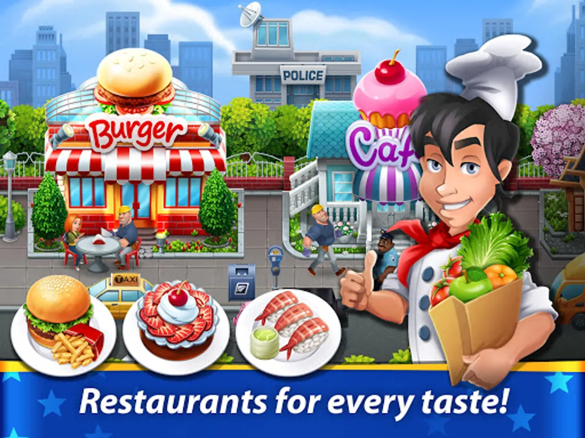 Cooking Stars is a fresh restaurant game where you prepare food: burgers, sushi, pizza, cupcakes, ice cream and hundreds of other delicious meals using recipes from around the world! Become both a chef and a waiter. Manage your own kitchen and serve meals to finicky customers. Get huge tips for providing excellent service!