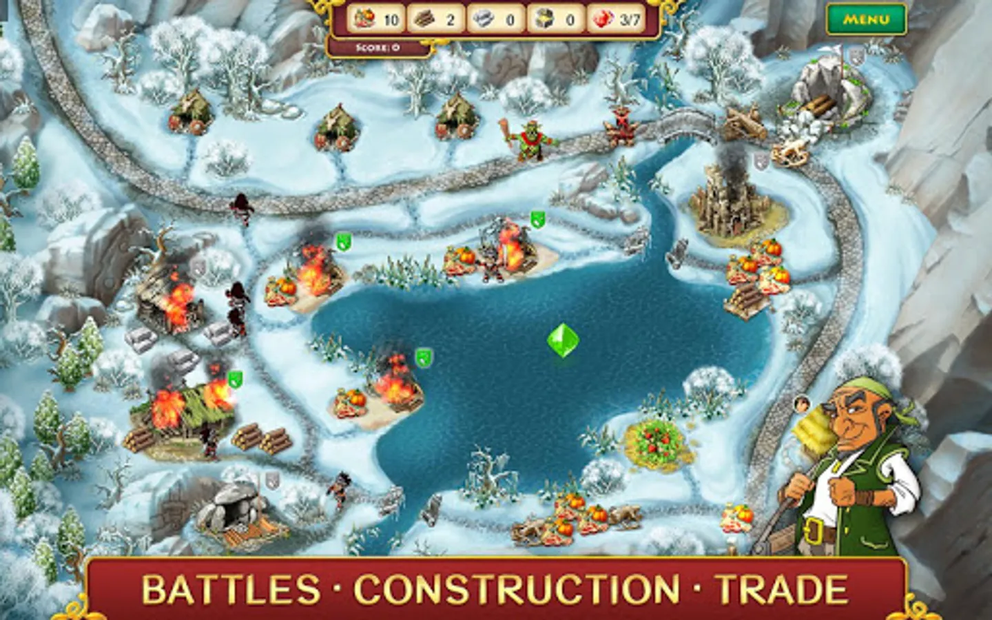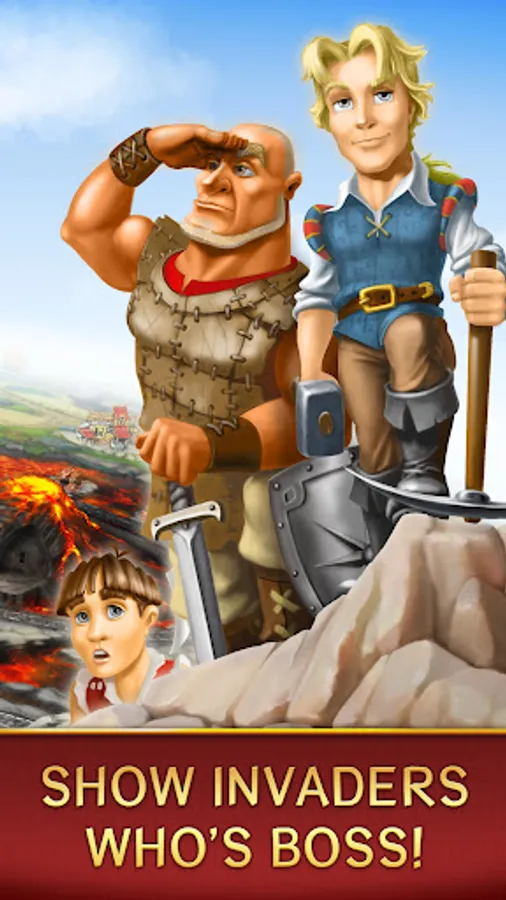 This is an adventure story about John Brave who finds his homeland captured by a greedy villain and only he is courageous enough to fight and save the kingdom from total plunder. Control workers, clerks and warriors on your quest to restore the towns and villages, solve mysteries, defeat the enemies and restore order. Special magic skills and artifacts will assist to rescue the princess, defeat the villain, and save the homeland.