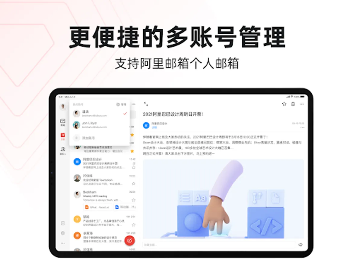 One of the earliest enterprise mailbox service providers in China, with 20 years of professional enterprise mailbox operation experience, serving more than 10,000,000 enterprise users. - This client only supports Ali mailbox, aliyun.com, dingtalk.com account login. - You can add various types of enterprise mailboxes and personal mailboxes such as NetEase Enterprise Mail, Tencent Enterprise Mail, 263 Enterprise Mail, etc. - The only email operator in the industry with independent public cloud services, high-performance network architecture, high availability, and no single point of failure risks. - Ali mailbox relies on the Ali ecosystem, based on the security attack and defense system of Taobao and Alipay, and comprehensively uses multi-layer defense measures to prevent spam, virus Trojans, phishing, account anti-collision library and anti-brute force cracking and other security threats. - The mailbox service supports TB-level mailbox capacity and GB-level super large attachments. - Intelligent DNS resolution makes cross-border office smoother. - Email sending automatically supports "green channel". - The spam filtering rate is greater than 99.99%. - Ali mailbox integrates email, calendar, and address book. On the basis of traditional email, it opens API and can achieve high integration and collaboration with the company's own office OA system. -Seamlessly integrated with DingTalk, it now supports functions such as "Approval", "Task", "Notepad", and "Beehive". For more details, please visit https://exmail.aliyun.com to apply for a free trial.