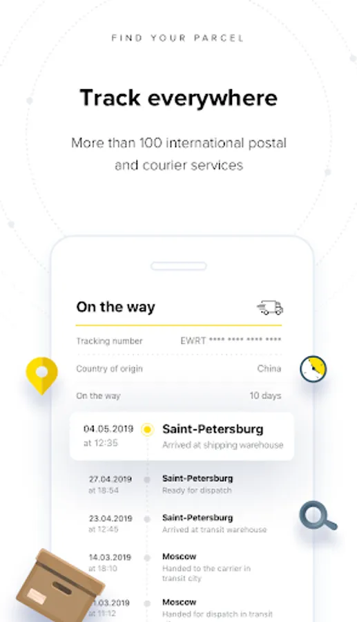 Wherever your order is: China, USA, Germany, Russia, Ukraine, Kazakhstan – we will show its’ location, status and travel history. When the parcel gets to the place of destination we send free notification.