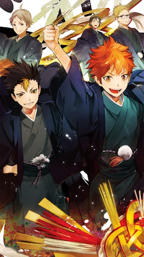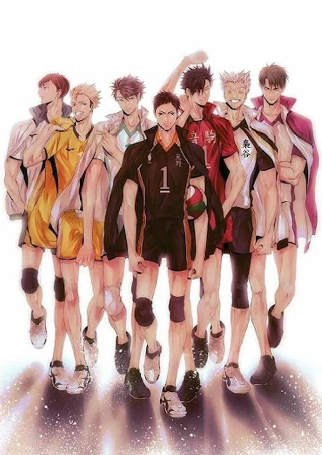 Main characters: Shōyō Hinata, Tobio Kageyama, Daichi Sawamura, Yū Nishinoya, Ryūnosuke Tanaka, Kōshi Sugawara, Kei Tsukishima, Tadashi Yamaguchi, Asahi Azumane