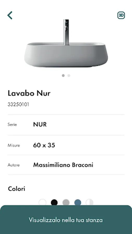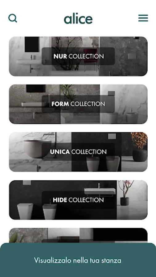 The Alice Ceramica app allows you to insert bathroom fixtures, sinks and furniture in 3D and in real size in your bathroom. Just frame the environment around you with the camera and select the products to view them in space.