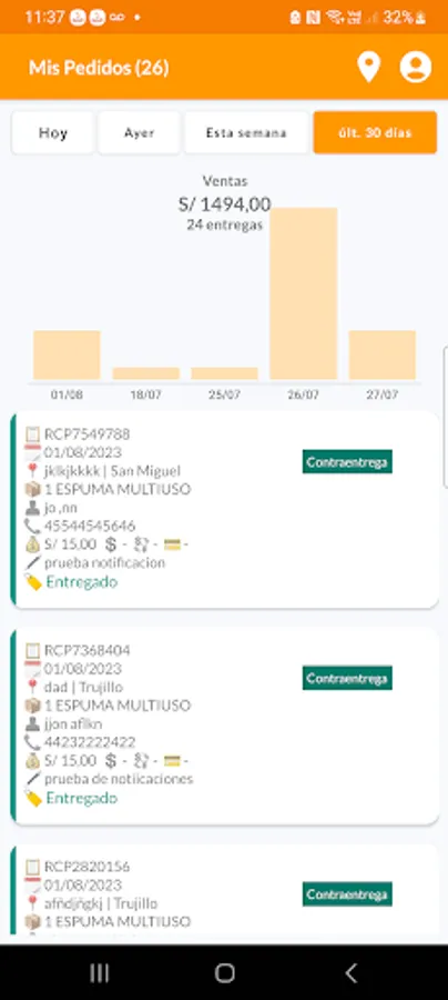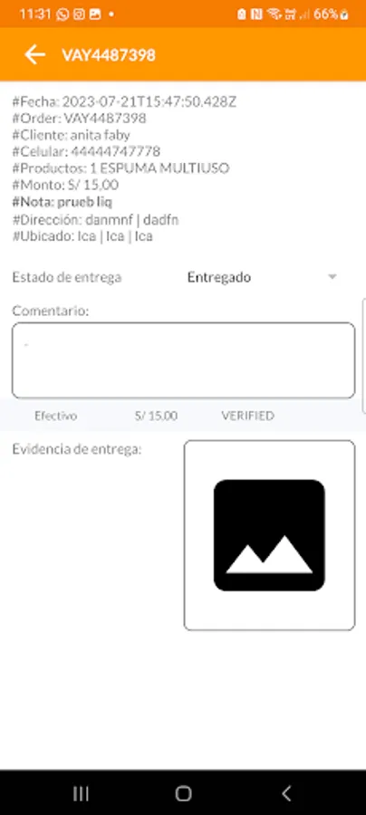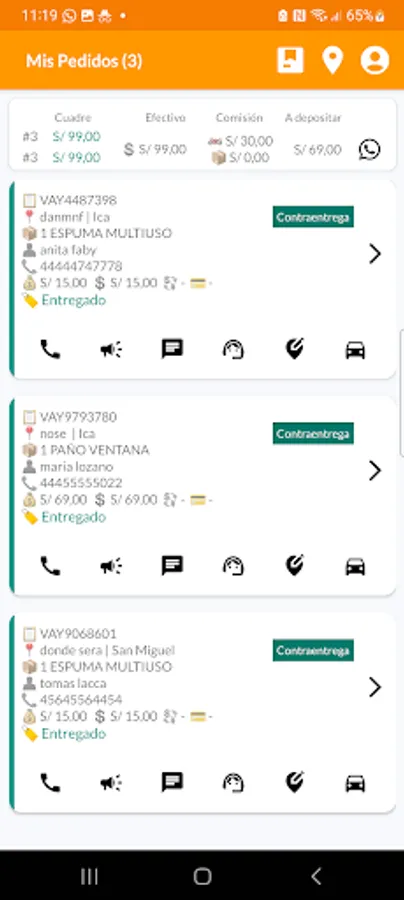 Application part of the digital ecosystem for electronic commerce, intended for the use of motorized vehicles to view the assigned delivery orders and update the corresponding delivery and collection information.