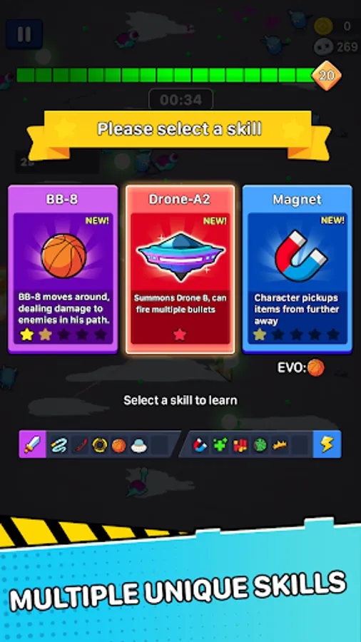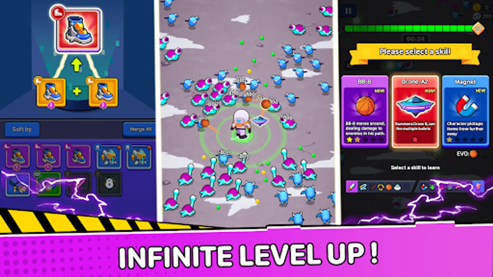 You are the hero in Alien Survivor, fighting thousands of monsters everywhere. Aliens have landed all over the Earth, they will soon smell you. Don't worry, you will be supported by more than 30 skills, collect the necessary skills in the process of fighting and upgrade them to the maximum. The mission becomes more difficult when you encounter some Alien Boss in survival craft. The secret to survival is to move skillfully and choose the right attack for each Alien Boss.
