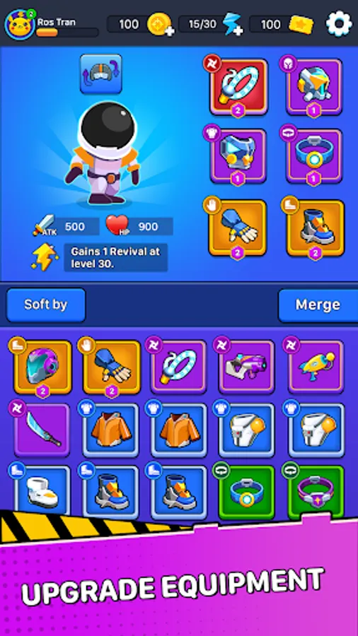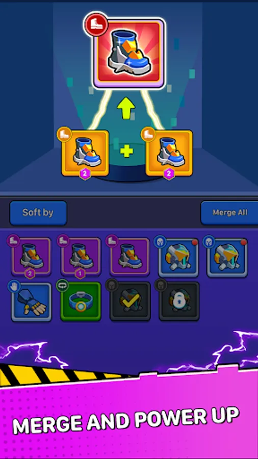Equipments tab: Equip items for Hero: gloves, hat, belt, suit, boots