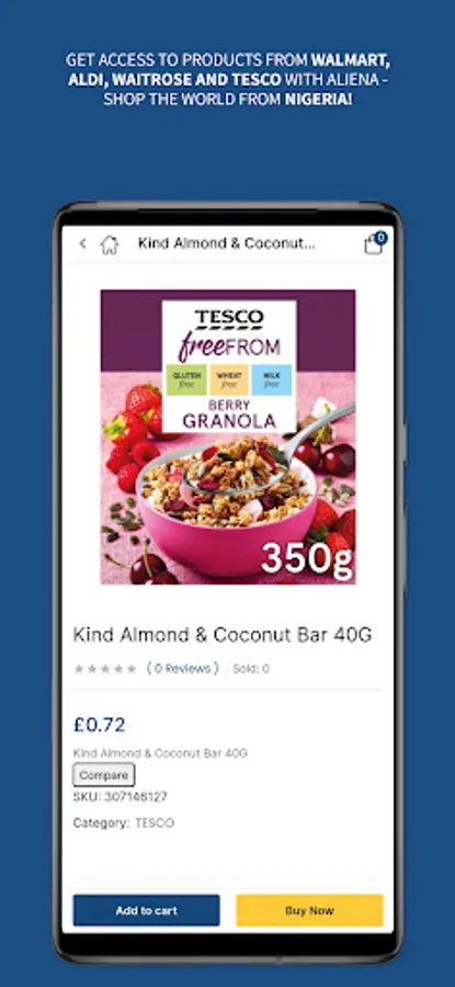 With Aliena, you can order the best biscuits, chocolate and cereals from top UK and US stores without having to leave your home. Get access to products from Walmart, Aldi, Waitrose and Tesco with Aliena - shop the world from Nigeria!