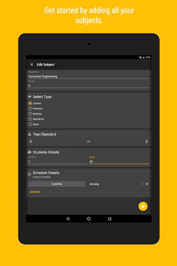 Now you don't need to remember the time of your next lecture, just add your lecture details and schedule it. Smart Attendance will automatically remind you 10 minutes before your lecture starts.