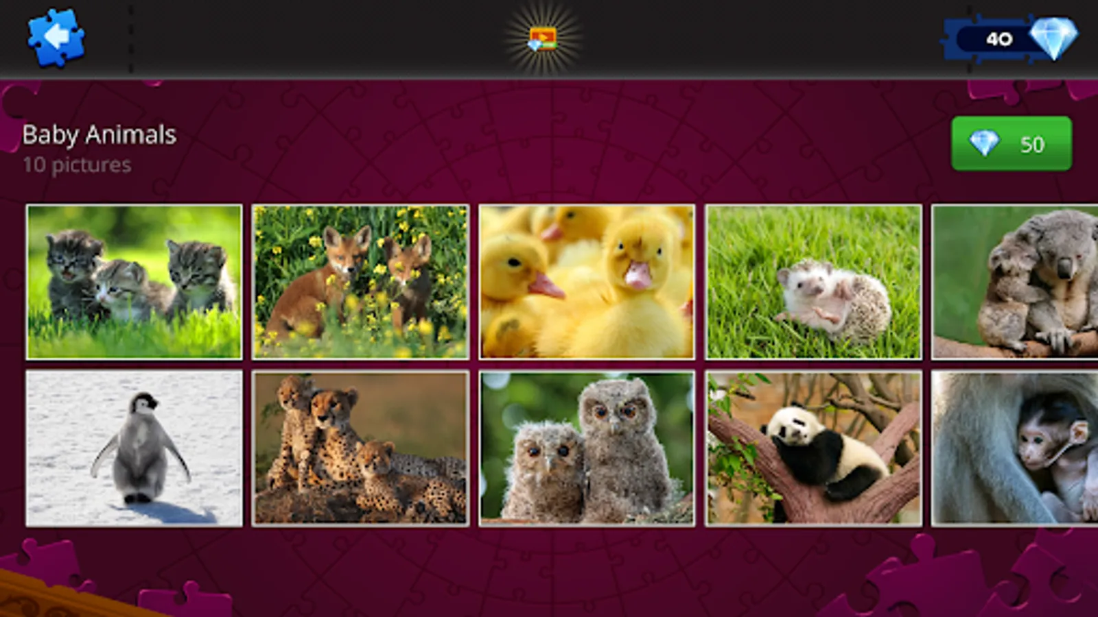 - Tons of free, beautiful HD puzzles from a variety of collections: Flowers, Animals, Cars, Food, Paintings, Fruits, Landscapes, Sealife and more!