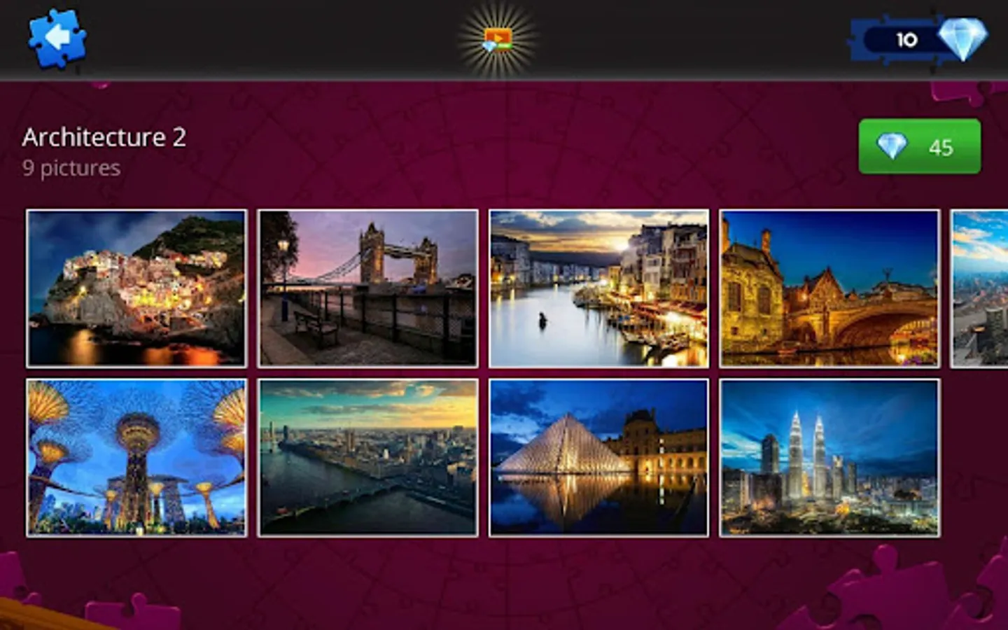 Jigsaw Puzzles contains thousands of high-quality HD pictures in a wide variety of collections, such as beautiful nature, wonderful architecture, interesting people, amazing art, lovely animals… You can freely choose from 3 difficulty levels, and play up to hundreds of pieces. The gem system brings you more fun. Play, earn gems, and unlock more free puzzle games! . It's not only a memory game but also a calming and relaxing app for adults. Playing free Jigsaw puzzles game online and offline could help you save money on buying physical ones.