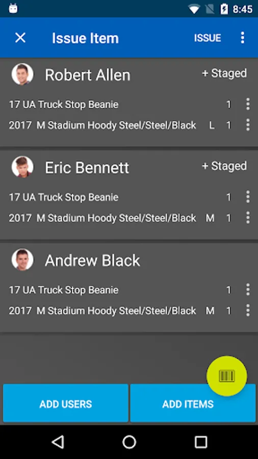 Manage your EquipCheck account from your phone or tablet, which adds the ability to issue items while on the go. Use the phone's built-in camera as a barcode scanner to make issuing faster.