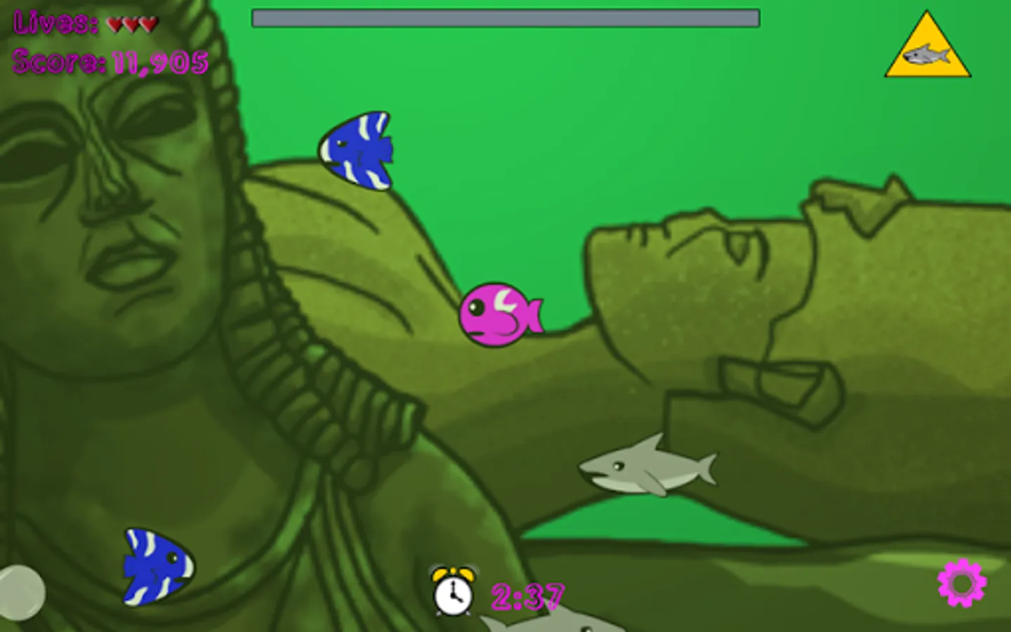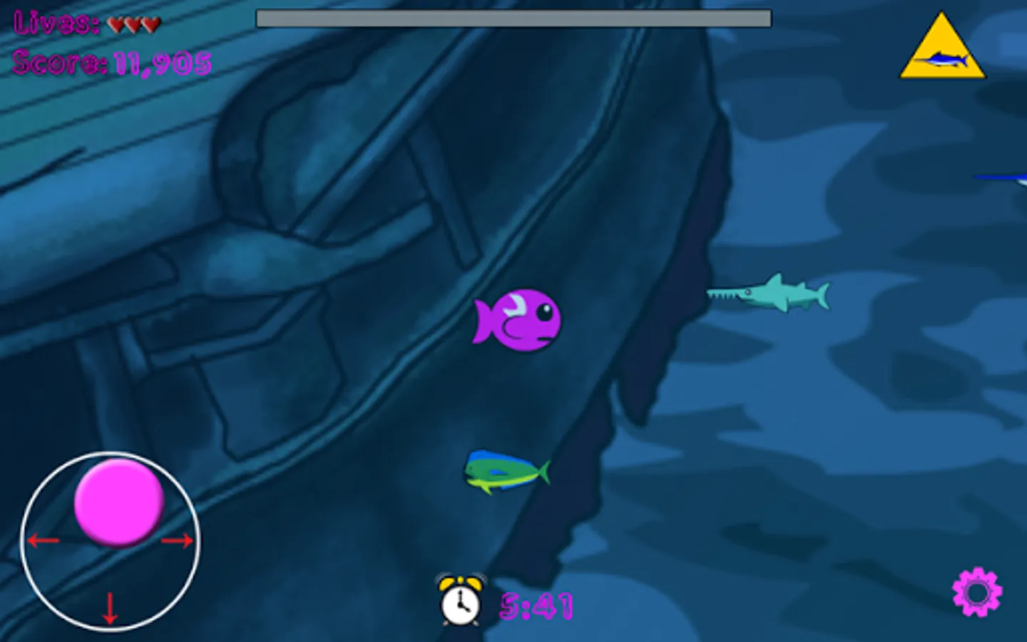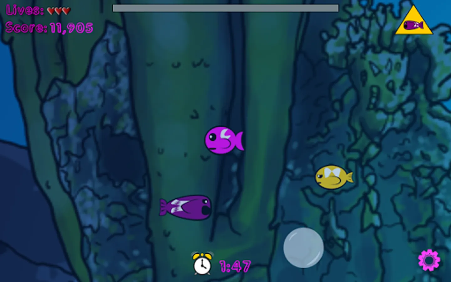 Noms the Fish™ is a casual game for Android devices. While it is also fun for adults, Noms is focused on being an appropriate game for kids of all ages. It allows for segmented periods of gameplay; making it easier for parents to control game time. It also features an in-game currency system that teaches kids how to handle money while still having fun building aquariums. Unlike many other aquarium games, Noms the Fish™ does not use microtransactions. Players are able to add fish to their aquariums simply by playing through the levels. They can then sell the fish to earn money to buy decorations, themes, and new aquariums. Players avoid larger fish and eat the smaller ones to help Noms grow through a story driven level system. The game also features achievements, twenty replayable levels, and four customizable aquariums to build.