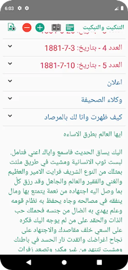 The revolutionary writer Abdullah Nadim has included in this magazine a collection of stories and literary scenes that criticize the current situation in his time in the form of sharp and funny criticism .. And also included the news of the news that belongs to the weeping morocco ... and some puzzles and a number of readers' contributions ...