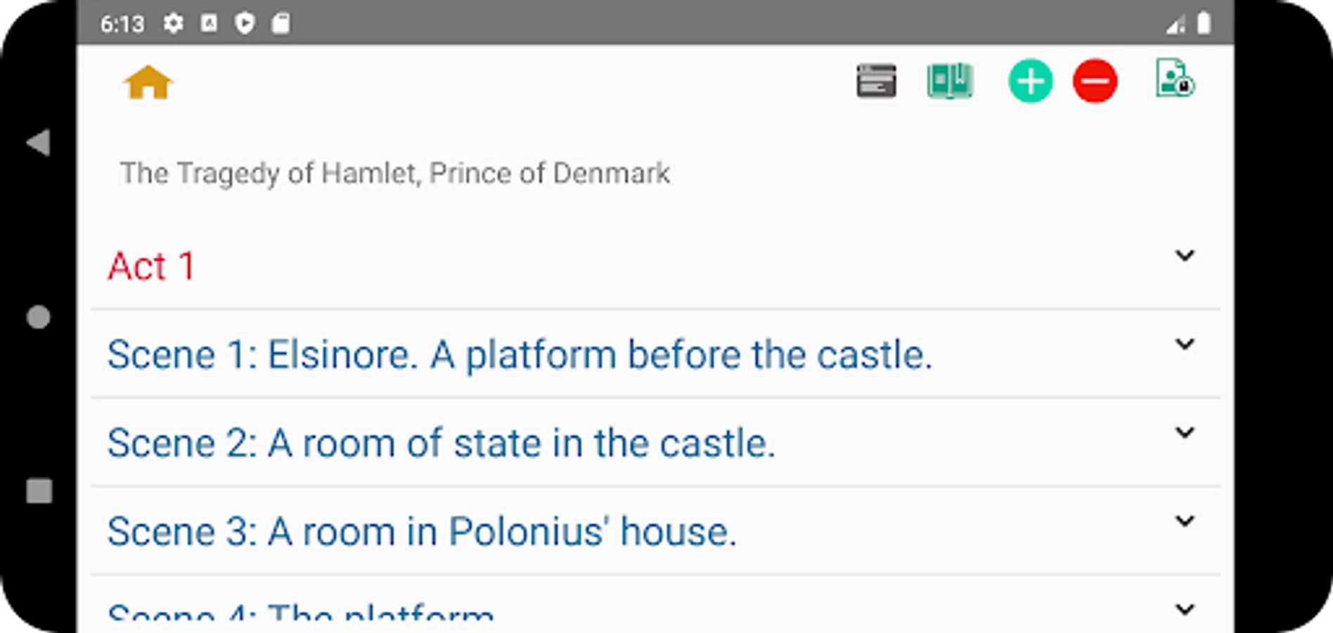 Antony and Cleopatra, Coriolanus, Hamlet, Julius Caesar, King Lear, Macbeth, Othello, Romeo and Juliet, Timon of Athens and Titus Andronicus.