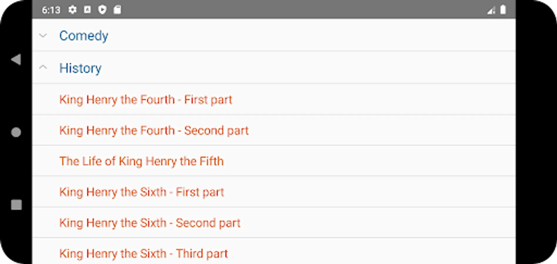 Henry IV, part 1, Henry IV, part 2, Henry V, Henry VI, part 1, Henry VI, part 2, Henry VI, part3, Henry VIII, King John, Richard II and Richard III.