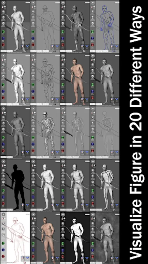 "Another great feature of the pose tool 3d app is the inclusion of muscle maps on the figures. These maps allow you to see exactly how the muscles in the body move and flex as you pose the figure, giving you a deeper understanding of anatomy and helping you create more realistic and believable poses. Whether you're a beginner artist learning about anatomy or an experienced professional looking to fine-tune your skills, the muscle maps in this app are an invaluable resource. So don't wait any longer - download the pose tool 3d app today and start using these amazing muscle maps to take your art to the next level!". Use it for Illustrations, Comic Books, Manga, Painting, Digital Art, Storyboarding.