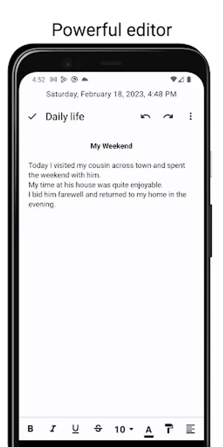 It has numerous formatting features like bold, italic, underline just like a regular word processor and you can even insert images.