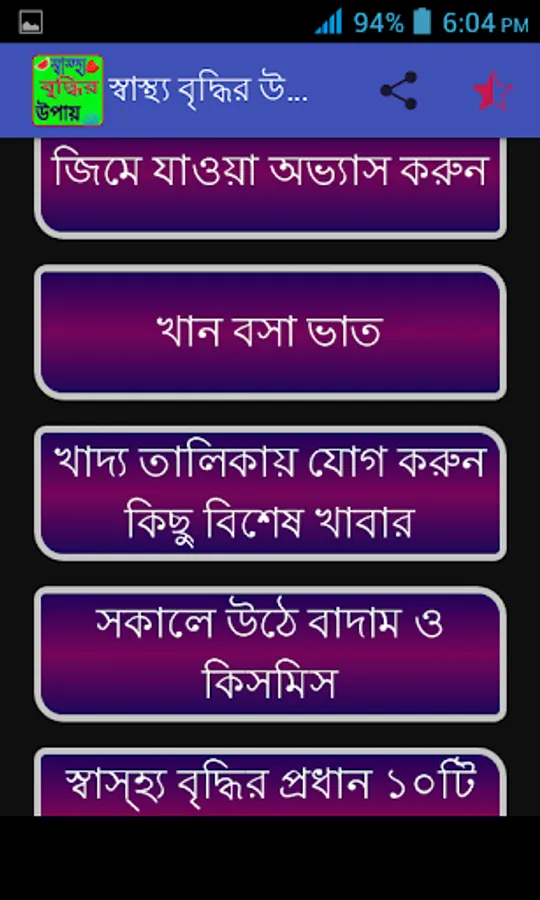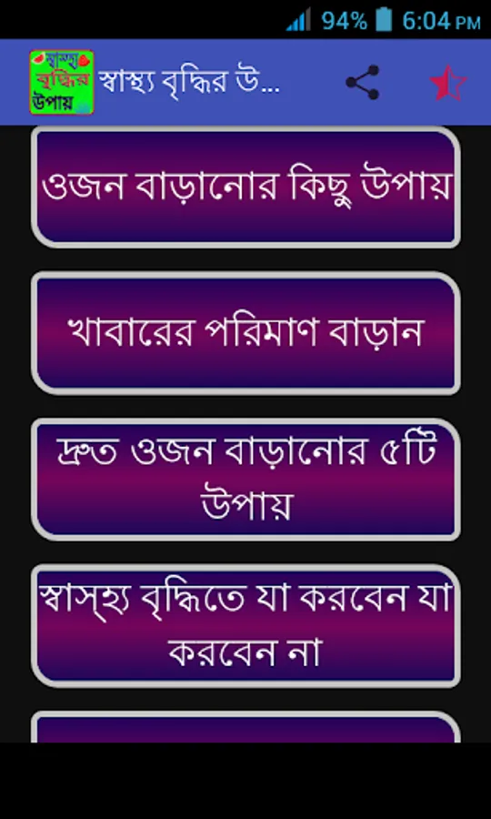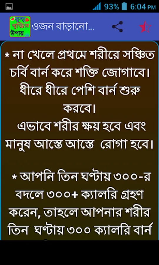শরীরে যদি কোন রোগ থাকে তাহলে আপনি হাজার কিছু করলেও চিকন স্বাস্থ্য মোটা করতে পারবেন না। আমাদের অ্যাপটি ফলো করার আগে আপনার শরীর চেকাপ করান যদি আপনার শরীরে কোন রোগ না থাকে তাহলে ইনশাল্লাহ আমাদের অ্যাপটি আপনার খুব উপকারে আসবে।