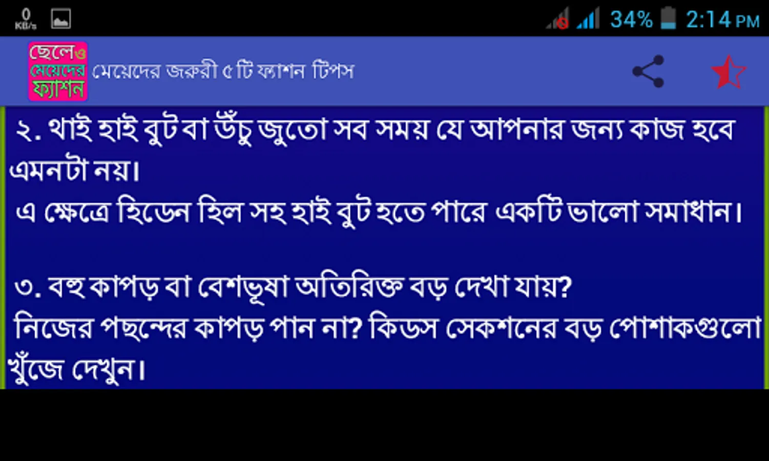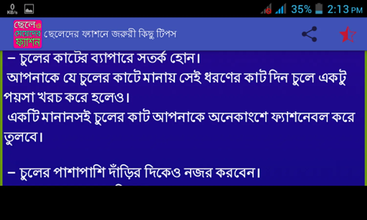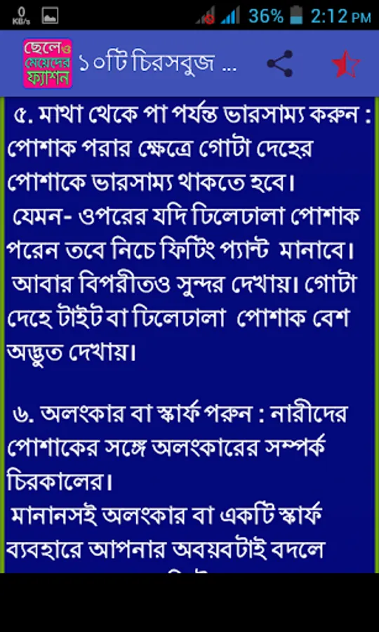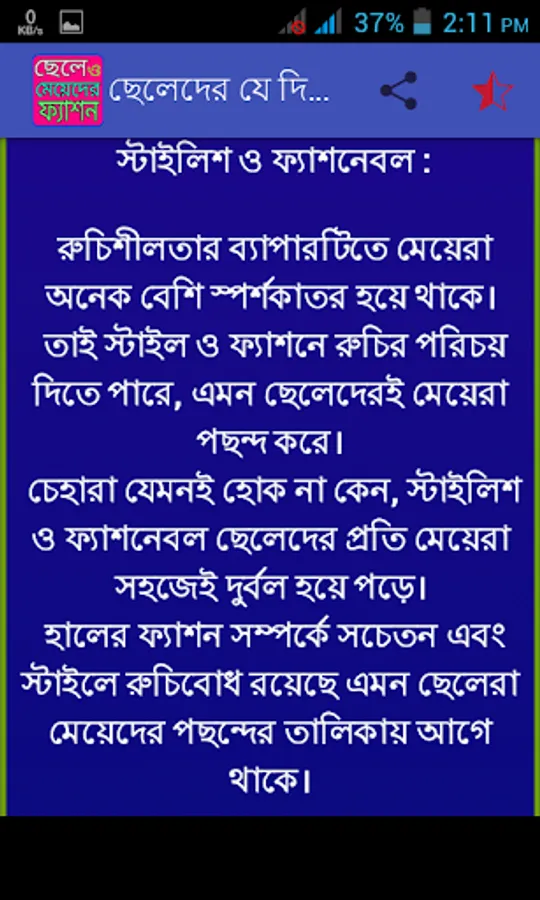 আমাদের অ্যাপটিতে পাবেন ছেলে ও মেয়ে ফ্যাশন টিপস।কি করলে মেয়েরা ছেলেদের প্রতি আকৃষ্ট হয়।। আরও পাবেন চিরসবুজ ফ্যাশন টিপস।।ছেলেদের সুন্দর্য বৃদ্ধির কিছু টিপস।।।।