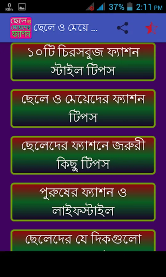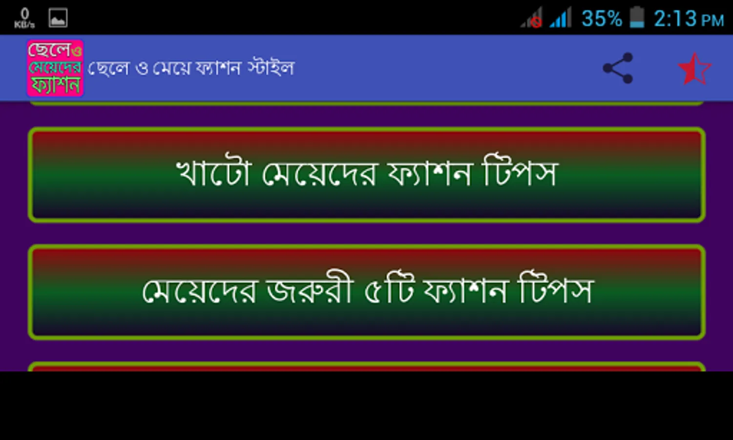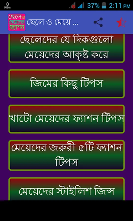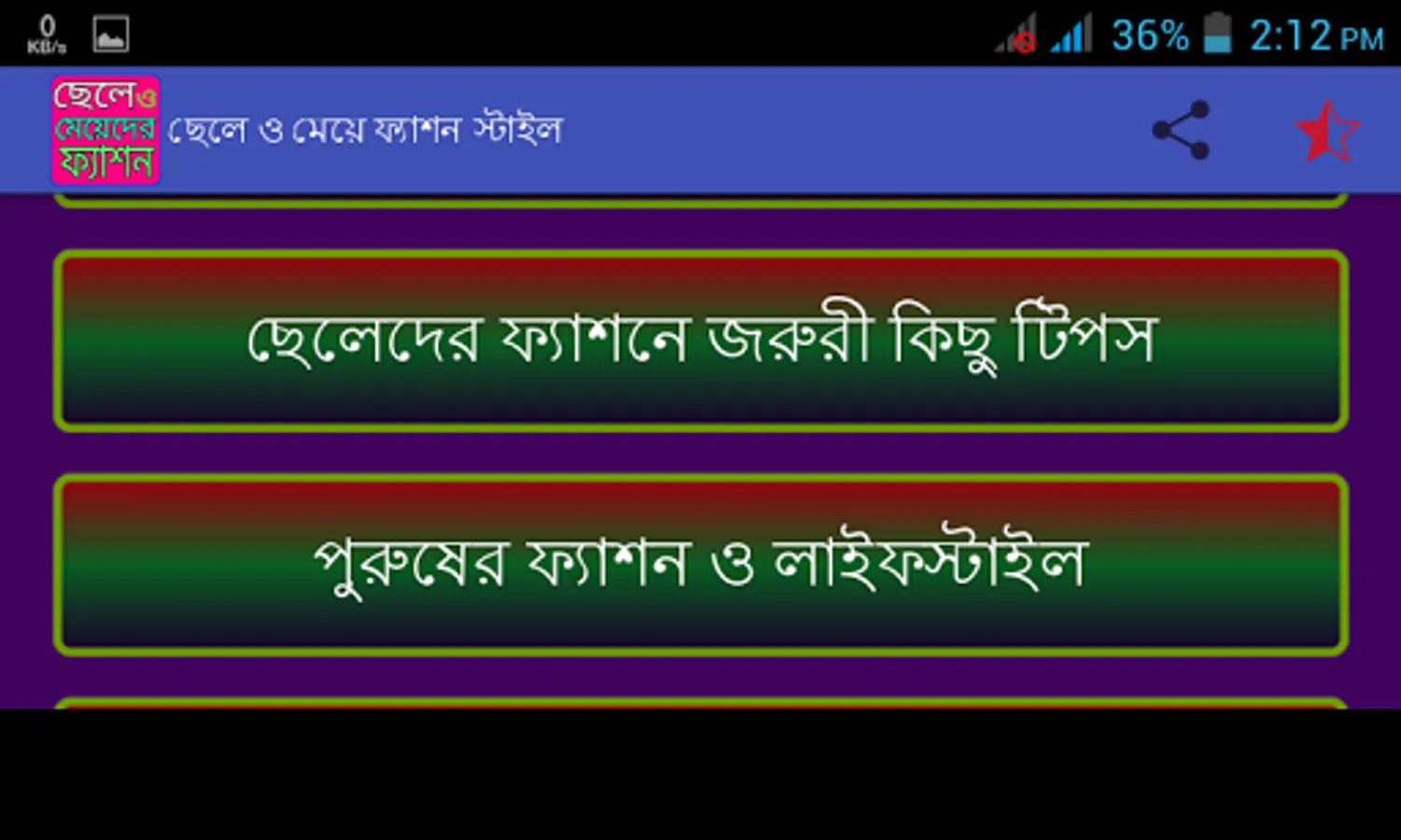 আমাদের অ্যাপটিতে পাবেন ছেলে ও মেয়ে ফ্যাশন টিপস।কি করলে মেয়েরা ছেলেদের প্রতি আকৃষ্ট হয়।। আরও পাবেন চিরসবুজ ফ্যাশন টিপস।।ছেলেদের সুন্দর্য বৃদ্ধির কিছু টিপস।।।।