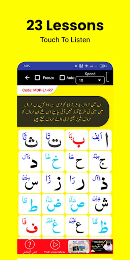 Madani Qaidah Pro is professional app which have more then 10 Languages support Urdu Hindi English Gujrati Bengali French Russian Spanish Turkish Chinese. and you can learn 23 lessons with Quiz Game and video lectures also. Dark and light theme support Touchable letters to listen back Change font styles and font size as you want. Remember rules with MDP codes.