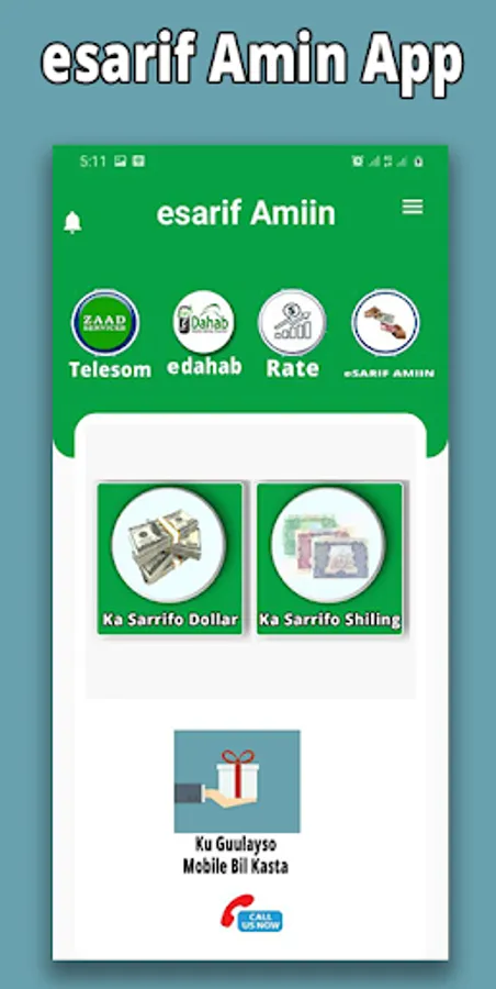 Isku sarifka lacaga dollar iyo shilliing ka sarifo sariflaha Esarif Amiin app kuna so dhawow qiime macquula goobkasta iyo goorkasta macmiil