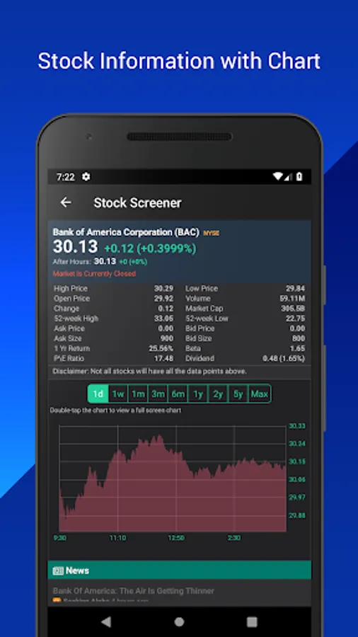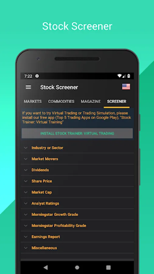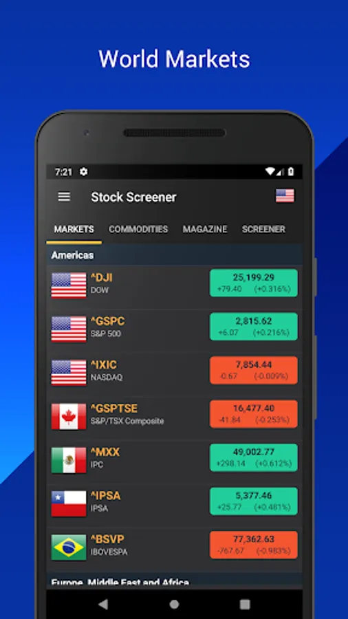 Users who want to trade stocks are often not aware of all the stocks. This app will help them discover stocks that match their search criteria. The app also supports various market indices, commodities and market news.