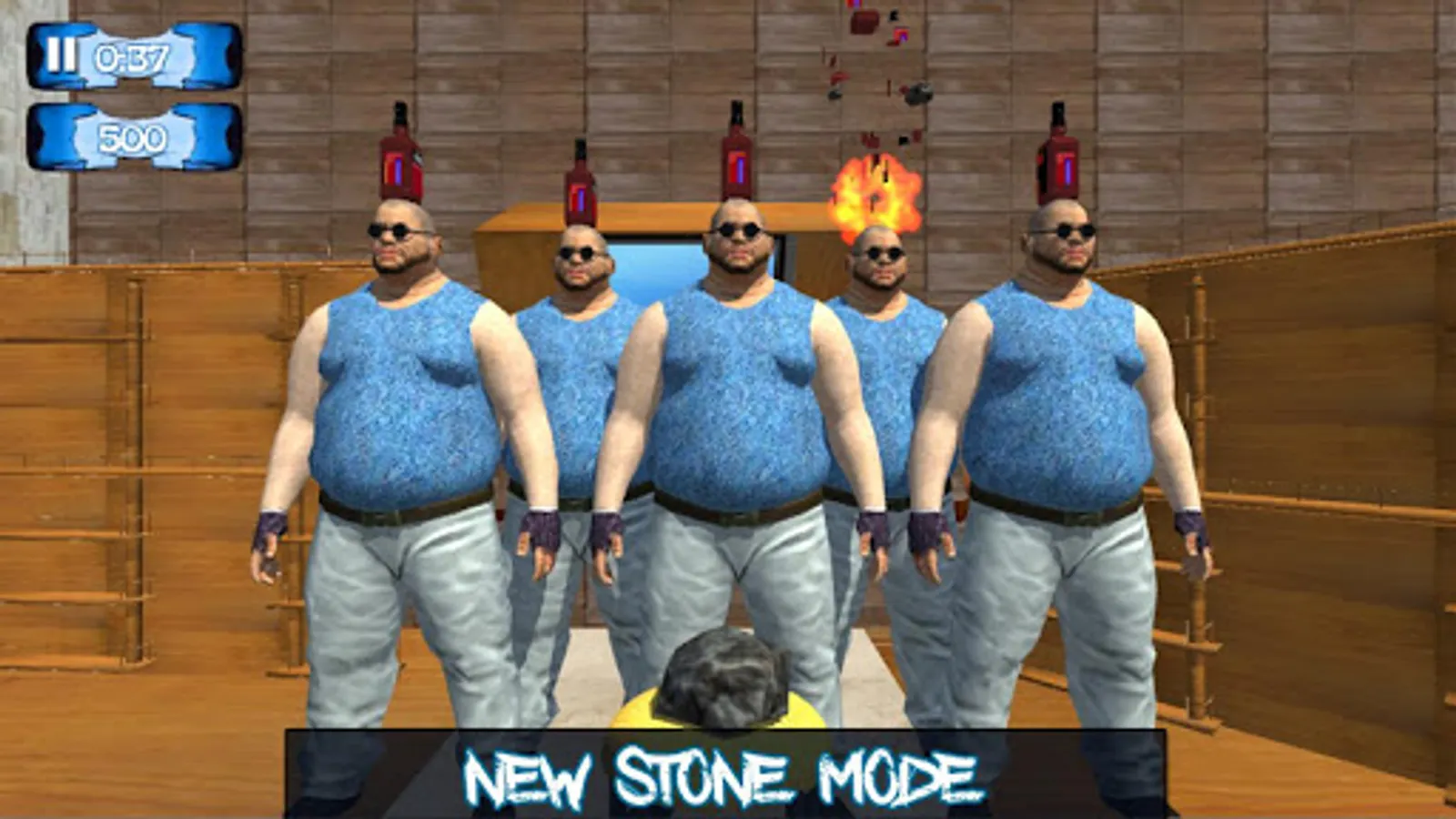 Bottle shooting is the free casual game with expert and challenging levels. You are free to shoot anywhere or anyone but the main aim is to shoot bottle. Miss the shot donβt worry you have extra bullets. Shot the fatty guy instead of bottle? donβt worry? Enjoy the slow motion bullet and character die animation. Aim and shoot like never before by challenging yourself and friends. Show your love toward Shooting game and be expert shooter in any Bottle game by breaking and shooting bottles.