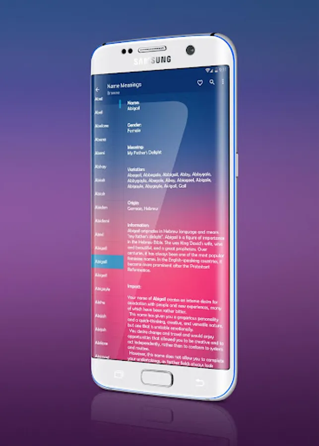 By installing "Name Meaning with Impact", get ideas and find inspiration in your search for the names of baby.