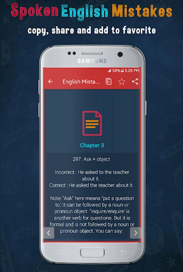 It will not only shows you common English mistakes but also improve your confidence while speaking and writing in English. This application is very carefully categorized to help users to understand the mistakes easily.