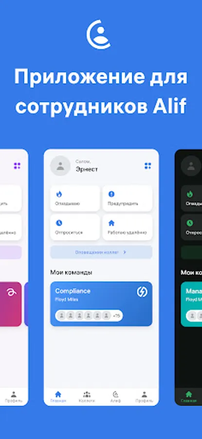 The Alif Teams application was developed to maintain personal statistics and record the efficiency of work processes among company employees. Alif Teams is your personal assistant to control your statistics, alerts, finances and reviews.