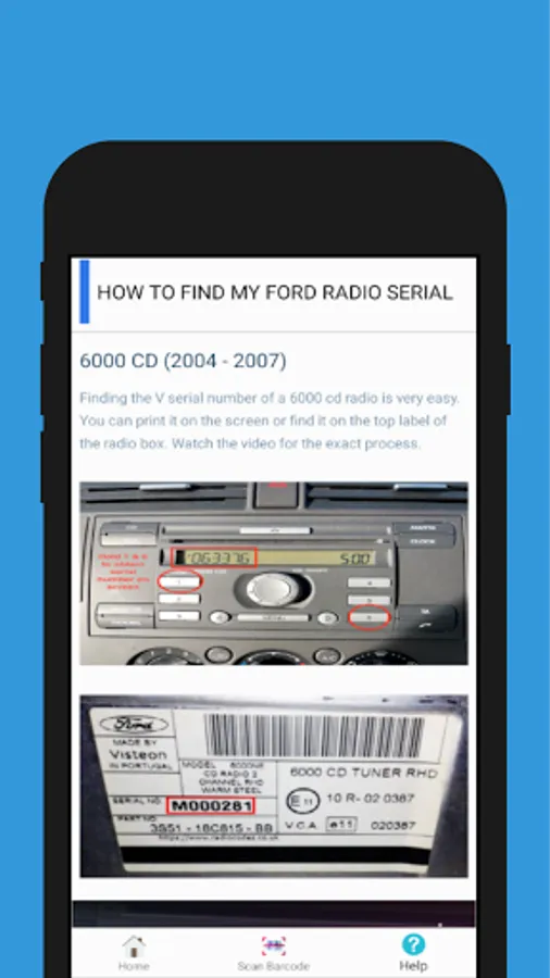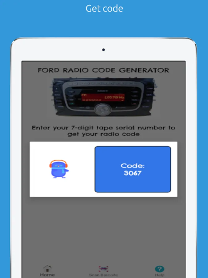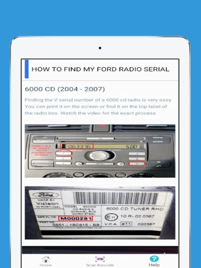 This application can provide you with the original manufacturer's security code required to activate your Ford car radio or CD player following a loss of power.