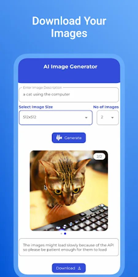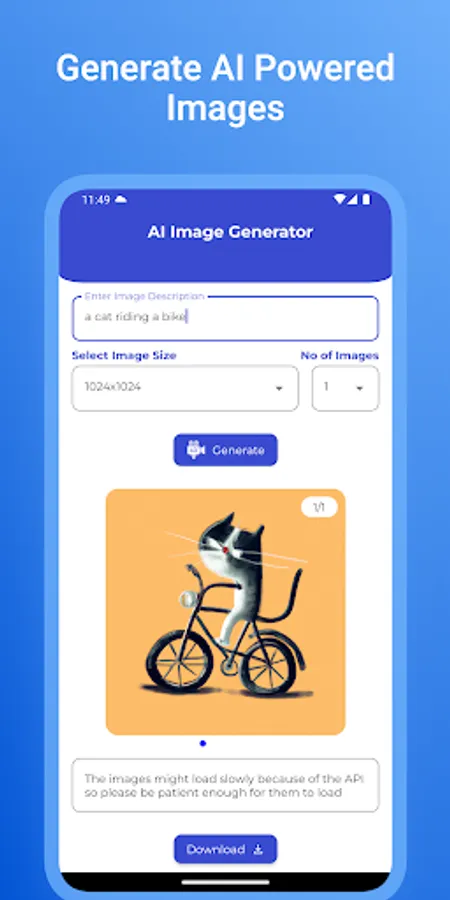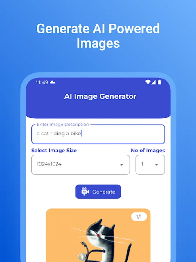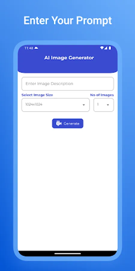 Let your imagination run wild! Our app empowers you to bring your ideas to life by providing a seamless interface for generating images based on your prompts. Whether you seek abstract art, futuristic landscapes, or whimsical characters, our AI is up to the challenge.