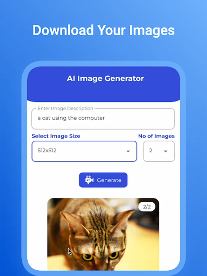 Embark on a journey of creativity and imagination with AI Image Generator. Download now and redefine the way you visualize the world. Unleash the power of AI and see your ideas come to life in beautifully crafted images!