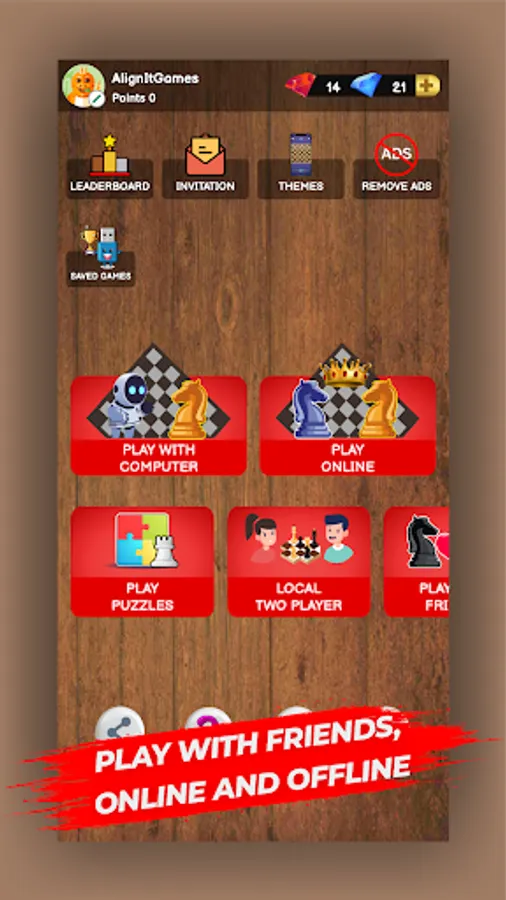 You can play with your friends or you make friends in the game itself. You can play as a guest or you can register your account with your Gmail account and play with your connected friends. Also, you can create custom Online Chess Rooms too. There is also a recent players list if you want to play again with someone you can invite and play.