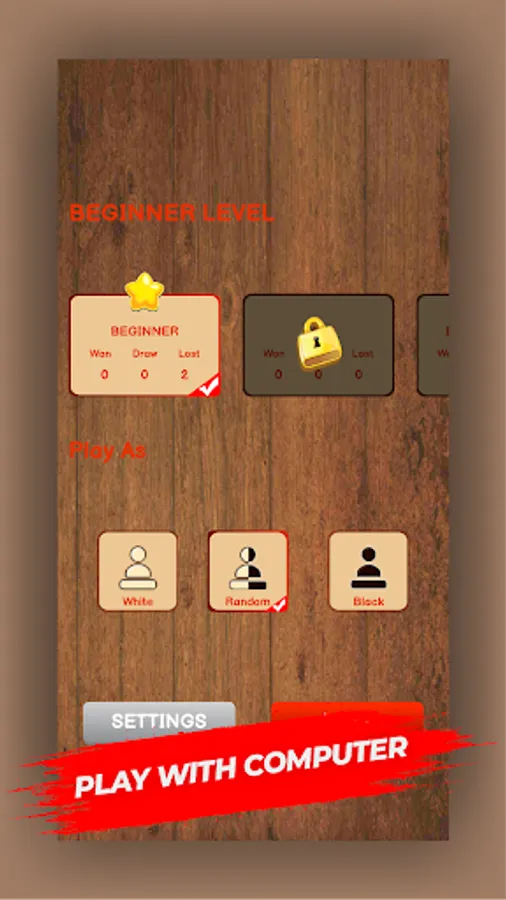 In our chess app you can play with a computer and there are 10 different difficulty levels. You can go from a complete beginner to the chess Grand Master. This also helps in practicing the game when you don’t have any experience of playing chess at all.