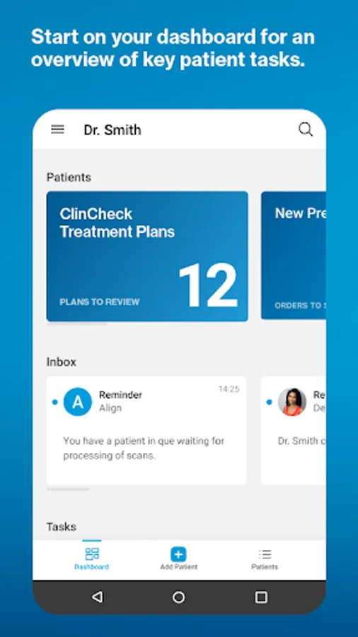 Easily manage and prioritize your day with the Invisalign Practice App. Do daily tasks on a simple intuitive interface, integrated with the Invisalign Doctor Site.