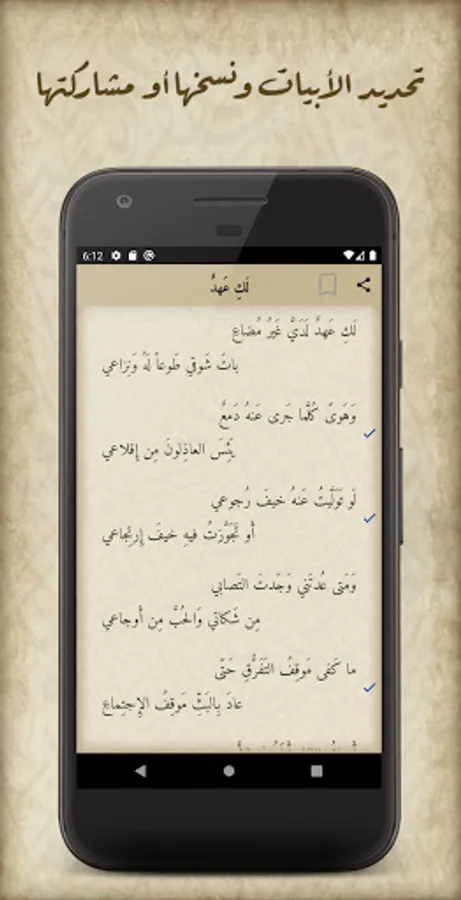 - The ability to copy verses from a poem, or share it directly via social networking applications