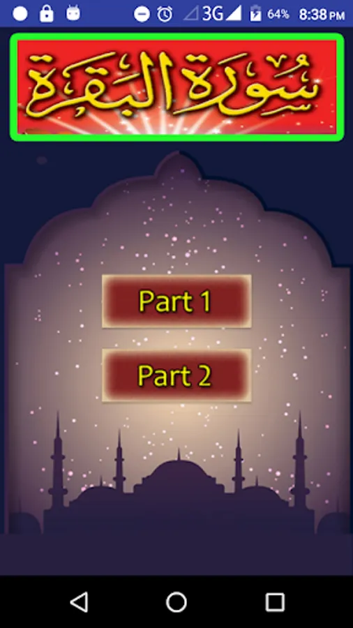 Surah Baqarah is a free Android App for all Android Phones and devices, you can listen the tilawat of surah with beautiful voice of Qari Sadaqat Ali. This Surah is complete in MP3 Audio format which you can listen also without internet with best quality and clear sound.
