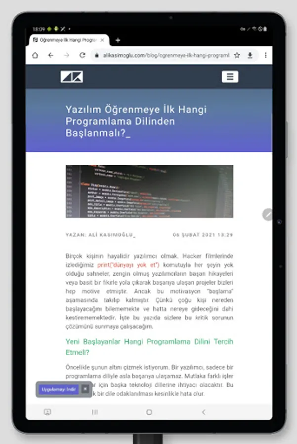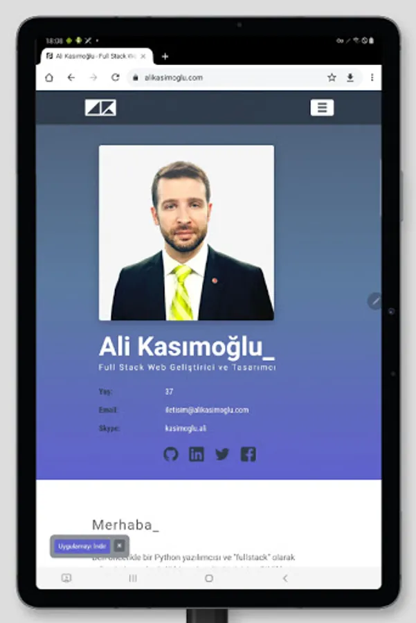 Android application of Ali Kasımoğlu's personal website.
