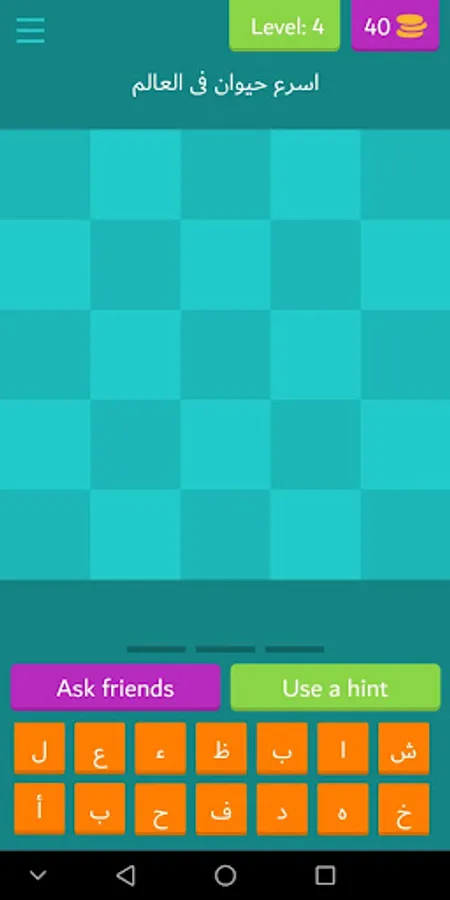 لعبة شيقة وممتعة لجميع الأعمار تهدف اللعبة الى التفكير وزيادة المعلومات الثقافية هي عبارة عن اسئلة وصور يجيب عليها اللاعب