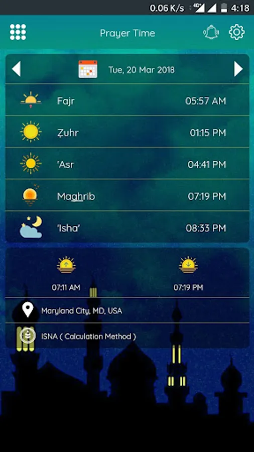 - Application is capable of fetching Automatic Prayer calculation methods of user's current location.