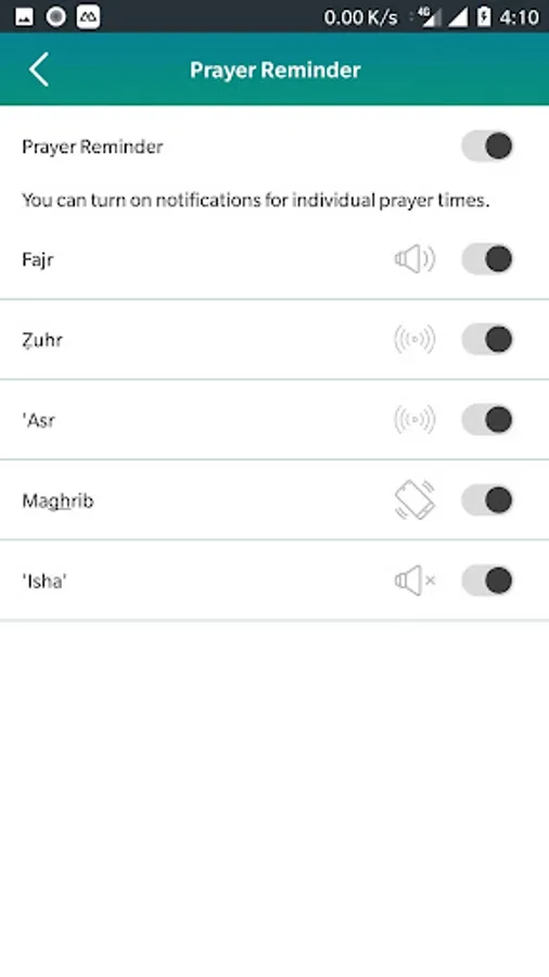 Notification Alerts differ from other similar Apps as it can be customized for each prayer. The notification settings include: