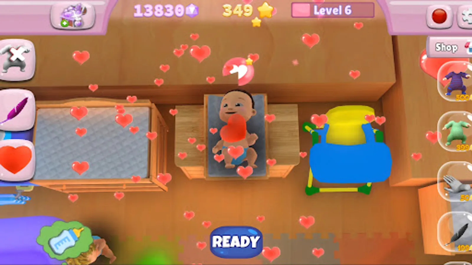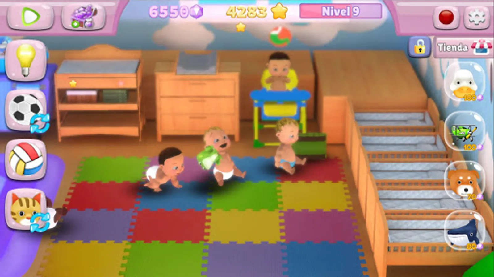If you take care good care of your babies, you will be rewarded with golden stars. Save them and you can buy clothes, toys, and food. You will have the happiest nursery in the world! Play and watch your babies grow