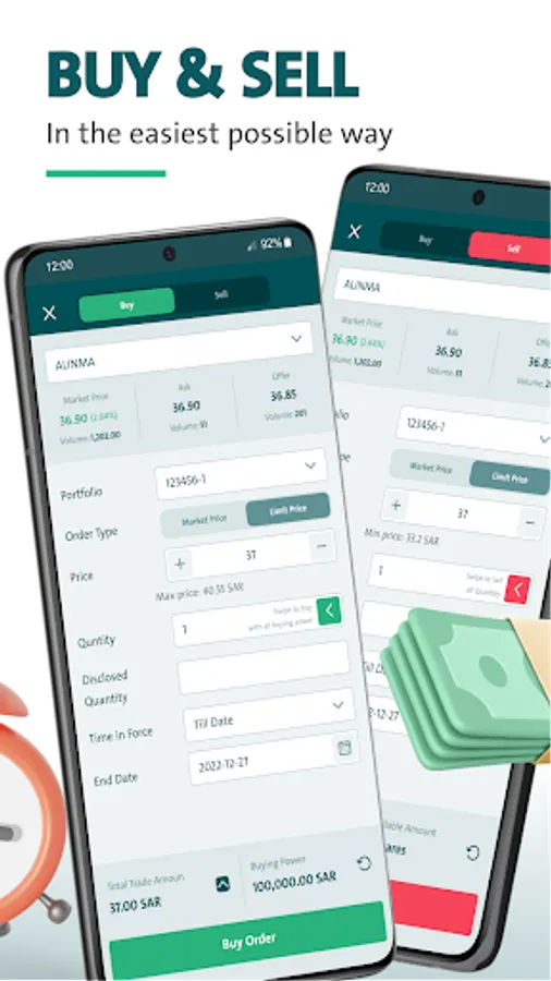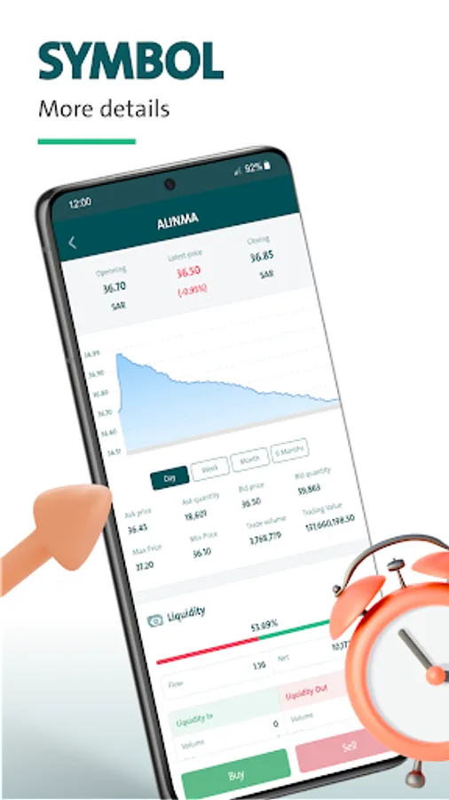 As an extension of our distinguished services, we are pleased to present you the new application “Alinma Tadawul”. It allows you to trade and manage your portfolios and investment funds at any time and place with all safety, speed and ease. Alinma Tadawul is an easy and secure way for market transactions and services, available for all customers of E-Channels services of Alinma Investment Brokerage Division. You can access your portfolios with the same internet username and password.