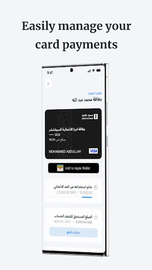 As part of our strategy to provide a premium digital banking experience, we are pleased to launch the new Alinma App with a variety of new and advanced features that meet your banking needs. The new Alinma application adopts a new vision of digital banking services, through which we seek to meet the aspirations of our customers and provide an easy and fast digital banking experience.