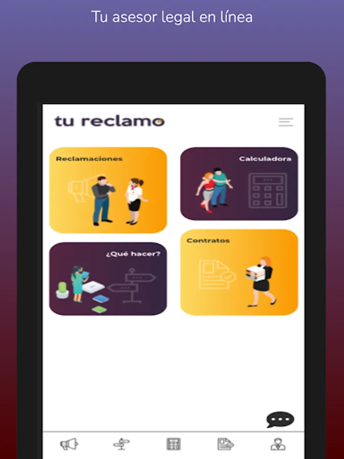 Los servicios prestados por Tu reclamo incluyen la reclamación tanto amistosa o extrajudicial como, en su caso, contenciosa en sede judicial con la asistencia de los abogados que prestan servicios profesionales para Tu reclamo.