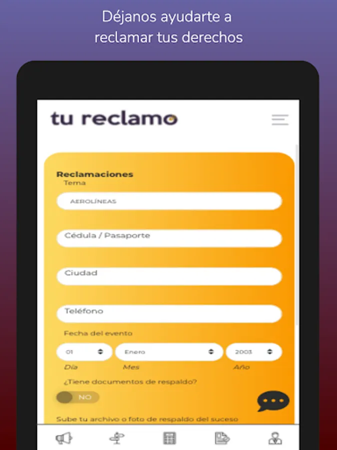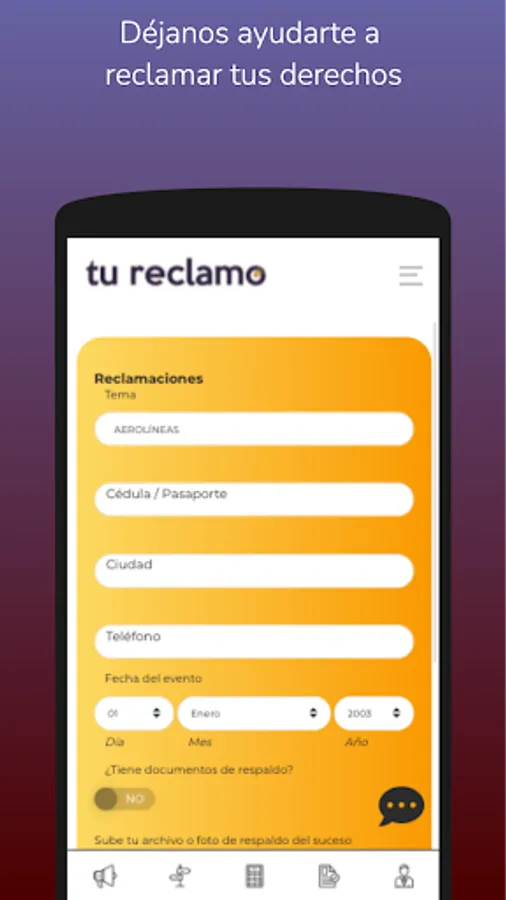 Regístrate y cuéntanos ¿cuál es Tu Reclamo?