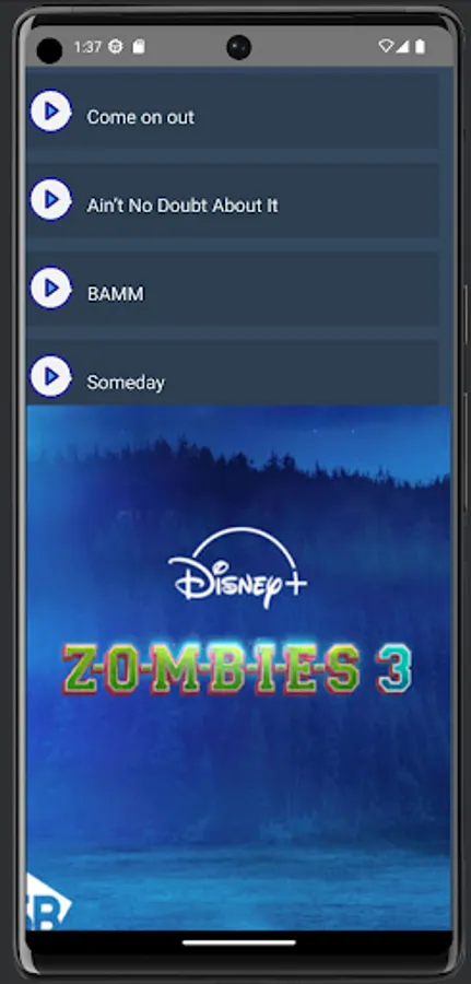 In this app you can hear the song of Zombies song while reading the lyrics.
