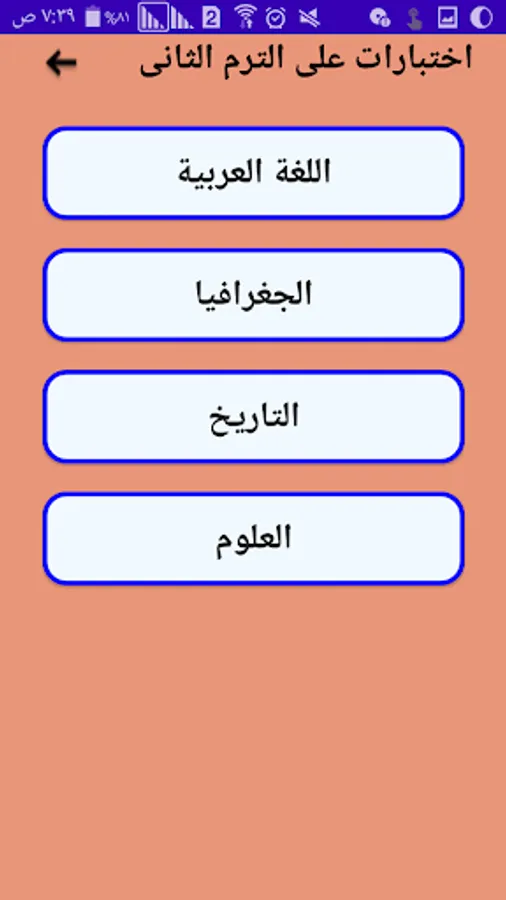 It is an application that contains interactive tests for third grade middle school subjects with an attractive and comfortable design for many questions and their answers at the same moment, with also an answer form to compare the student's answer with the correct answer and evaluate himself directly. Ask and find out if their answers are correct or not immediately